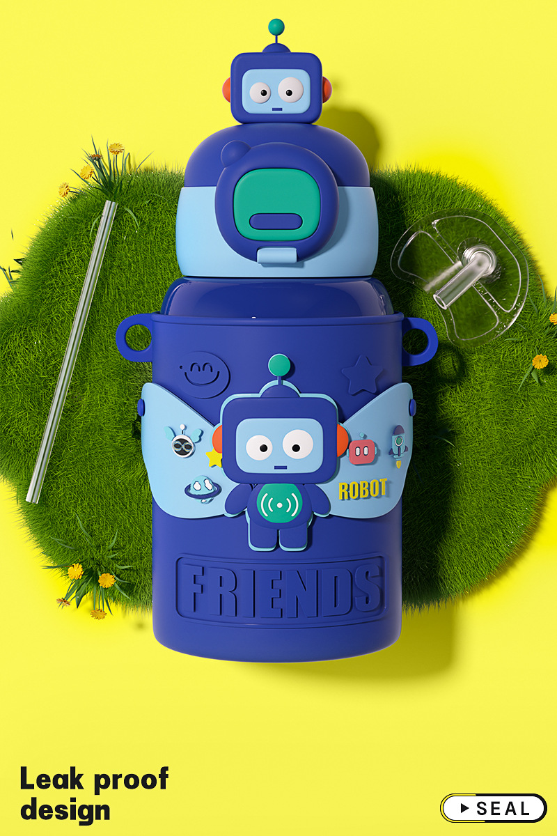 June 1 Children's Day High Appearance Level Convenient Cartoon Straw Cup Bouncing-Fall-Proof Leakproof Portable Children's Water Cup Thermos Cup
