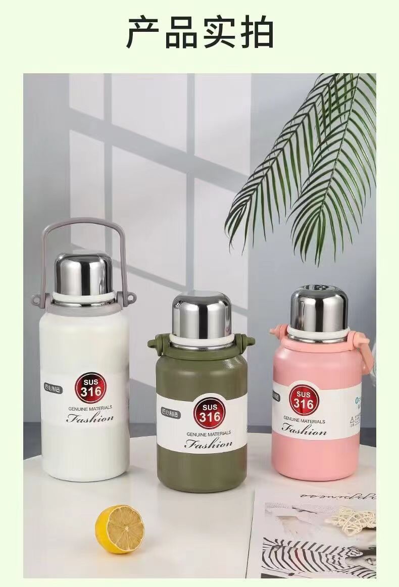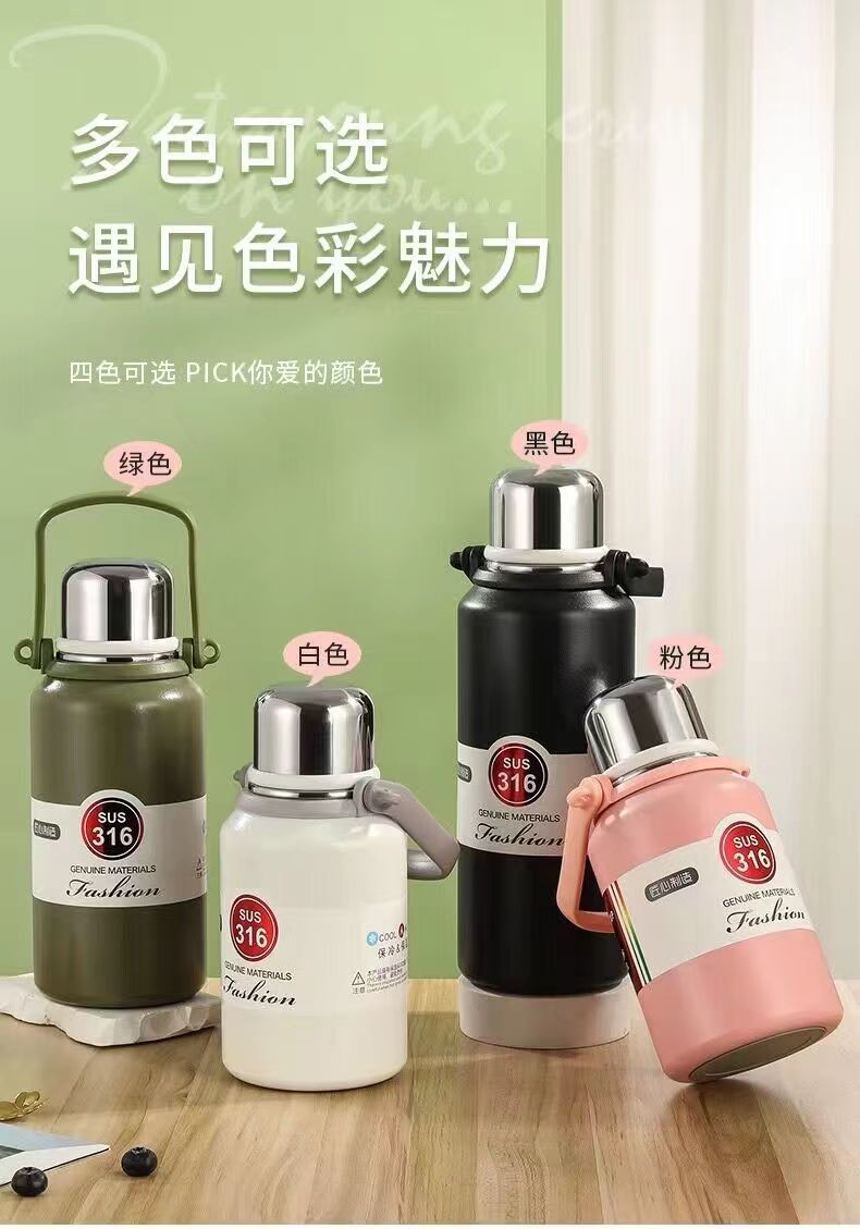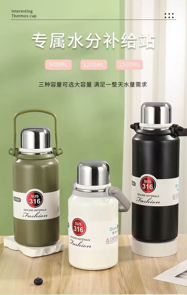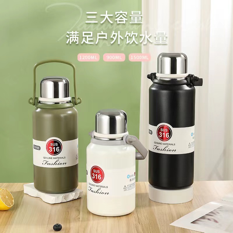New High Appearance Level All Steel Kettle 316 Stainless Steel Thermos Cup Large Capacity Outdoor Sports Portable Mountaineering Kettle