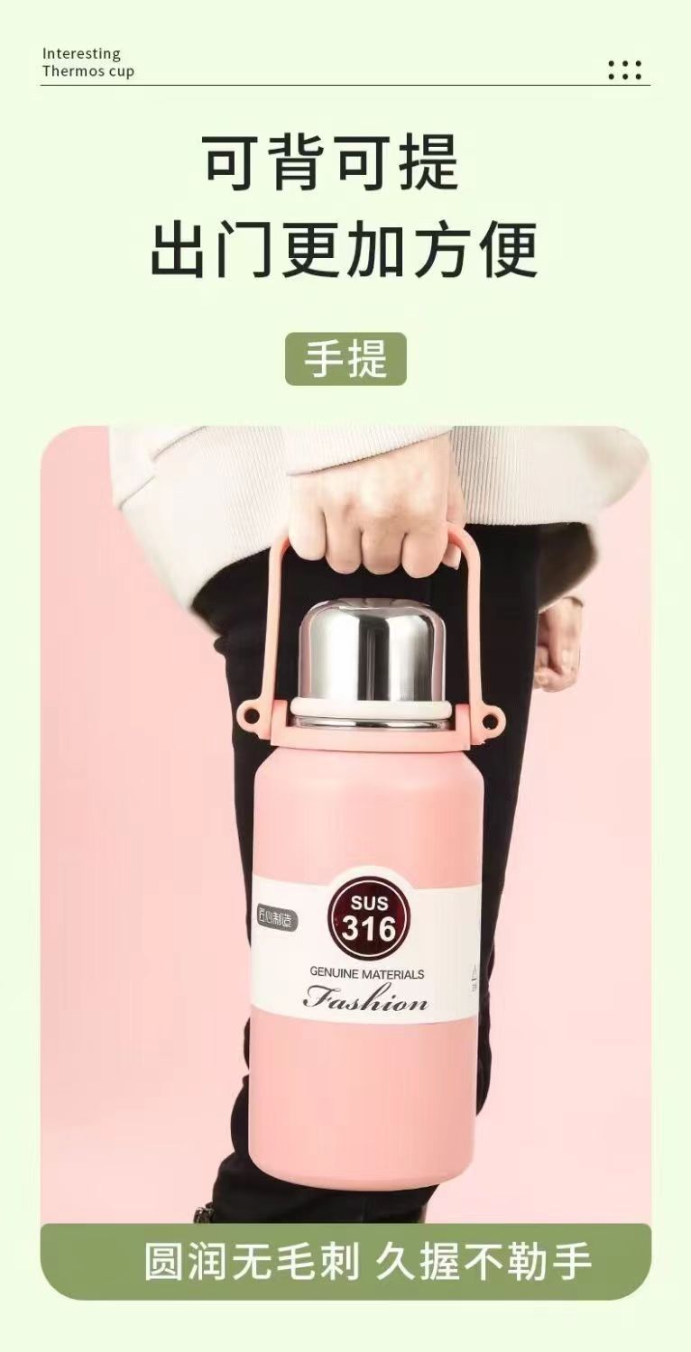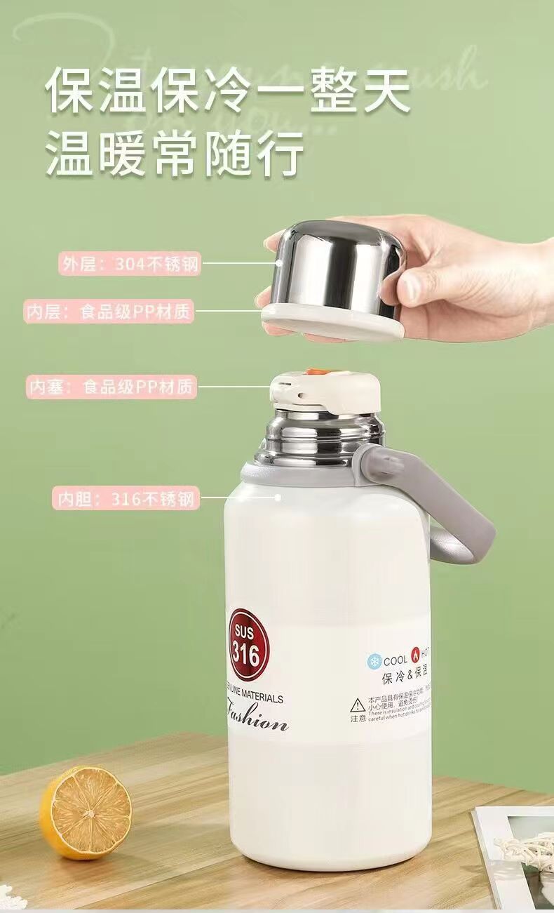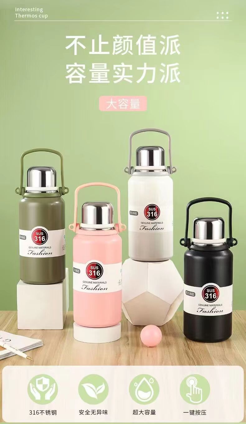 New High Appearance Level All Steel Kettle 316 Stainless Steel Thermos Cup Large Capacity Outdoor Sports Portable Mountaineering Kettle